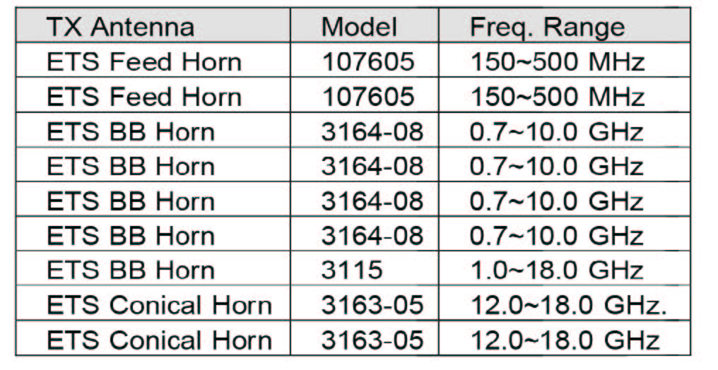 - A Naval Research Lab (NRL) broadband swept frequency arch was used for testing at 750 MHz to 6 GHz and 6 GHz to 18 GHz.