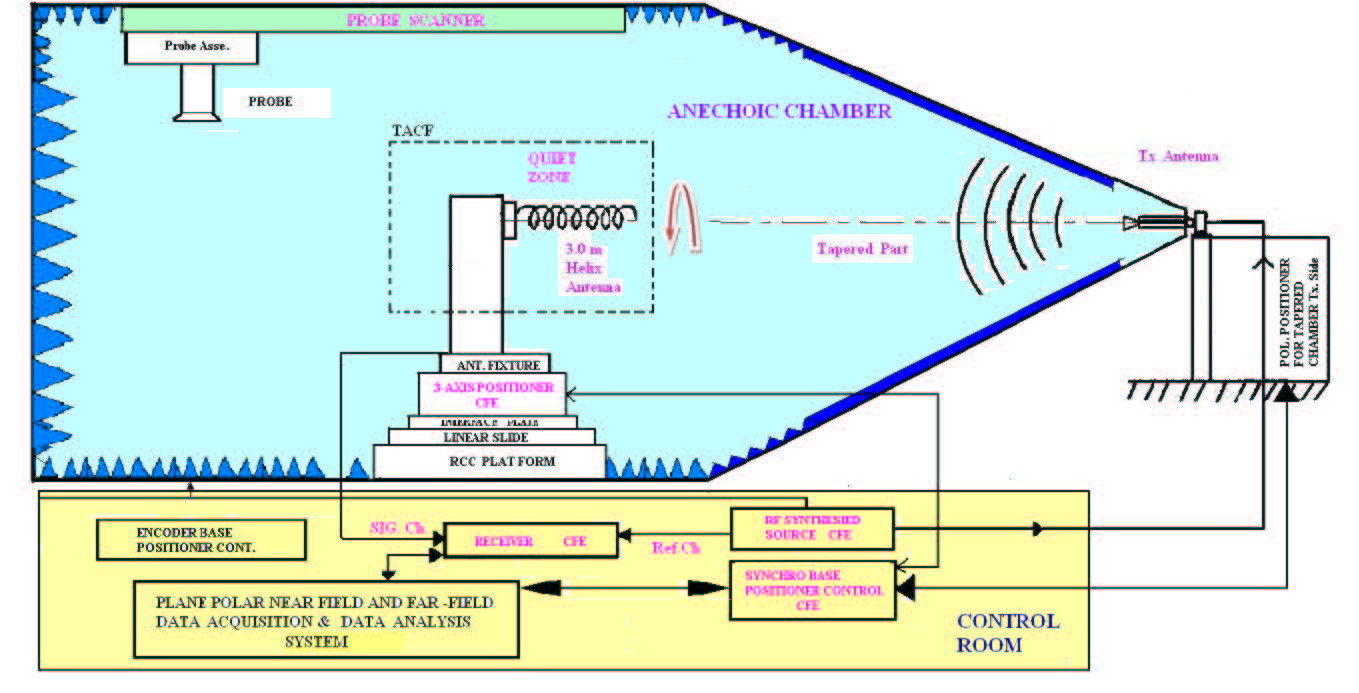 ISRO in Ahmedabad is involved in the development of advanced antenna technologies for communication, remote sensing and navigation as well as earth station programs. In order to meet the requirements of these technologies, a comprehensive test facility is crucial for the characterization of large size antennas at various frequencies. To meet these challenging requirements, ETS‑Lindgren designed and installed a combined Plane Polar Near Field (PPNF) and Far Field (FF) test facility which may be utilized for both characterizing gravity sensitive antennas and for characterization of low frequency antennas. Both test capabilities are housed in a single tapered anechoic chamber. Utilizing simulations and raytracing calculations, ETS‑Lindgren lent ISRO its considerable expertise in the design and installation of tapered anechoic chambers. Two test reports on similar chambers documented ETS‑Lindgren’s veteran capabilities.