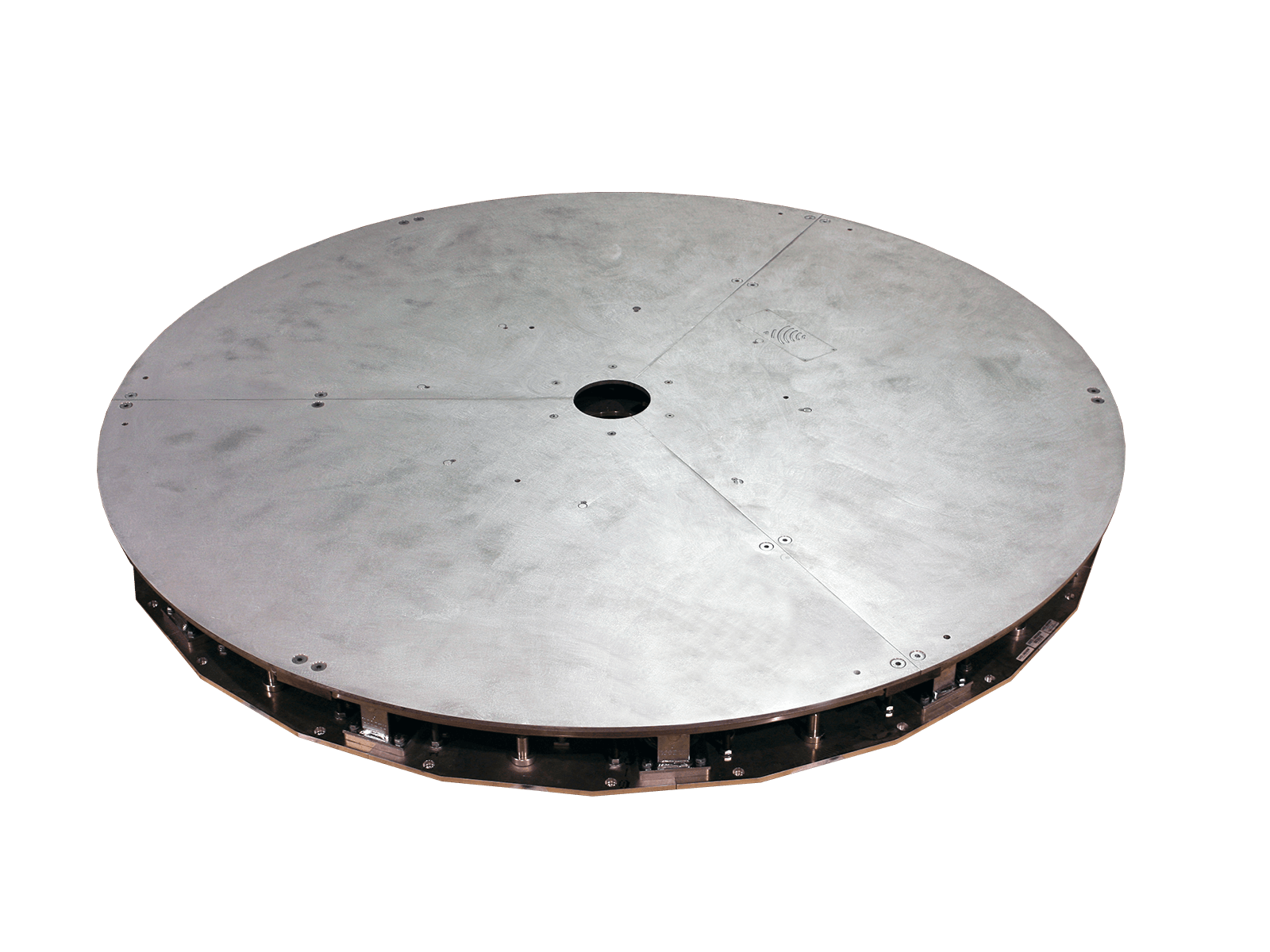 Designed for indoor use the Model 2187 turntable is designed for installations in new or existing chambers where pit excavation is not an option or must be shallow. Model 2187 series turntables are slightly taller than the model 2188 turntables which allows more EUT inteface cabling routed thru the center plate of the turntable and features a durable bronze filament ground brush and matching wear strip to provide continuous electrical coupling with the ground plane.