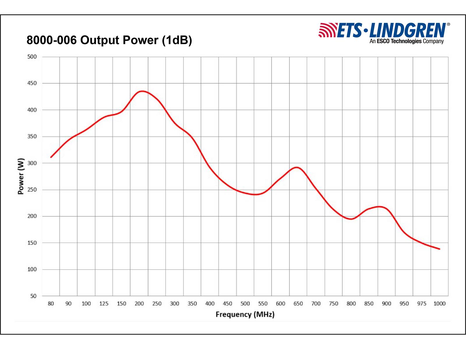 The Model 8000-006 RF Power Amplifier delivers 250 watts of output power and is engineered for demanding EMC applications, including IEC/EN 61000-4-3 testing up to 20 V/m. Its advanced Silicon LDMOS technology provides excellent linearity and efficiency while supporting a rugged design suitable for continuous, high-reliability operation. A compact form factor helps reduce overall system footprint, making it an excellent choice for laboratories with limited space. The amplifier offers very low distortion and is capable of handling a 100% output mismatch, ensuring stable performance even under challenging load conditions. A built-in safety interlock enhances operational protection for both personnel and equipment.