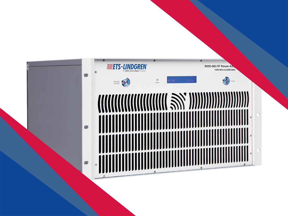 The Model 8000-063 RF Power Amplifier delivers 200 watts of output power and is designed for EMC applications requiring IEC/EN 61000-4-3 radiated immunity testing. Utilizing advanced MOSFET technology, it offers excellent linearity and efficiency while maintaining a rugged, high-reliability design suitable for continuous operation in demanding environments. Its wide operating frequency range from 1 GHz to 6 GHz supports modern high-frequency compliance testing needs across commercial and industrial markets. Very low distortion and 100% output mismatch tolerance ensure stable, accurate performance even under challenging load conditions. Remote control capability via GPIB, Ethernet, and USB allows seamless integration into automated test systems. With its robust 7U rack-mount configuration and optional bench setup, the Model 8000-063 provides a powerful and dependable solution for high-frequency EMC laboratories.