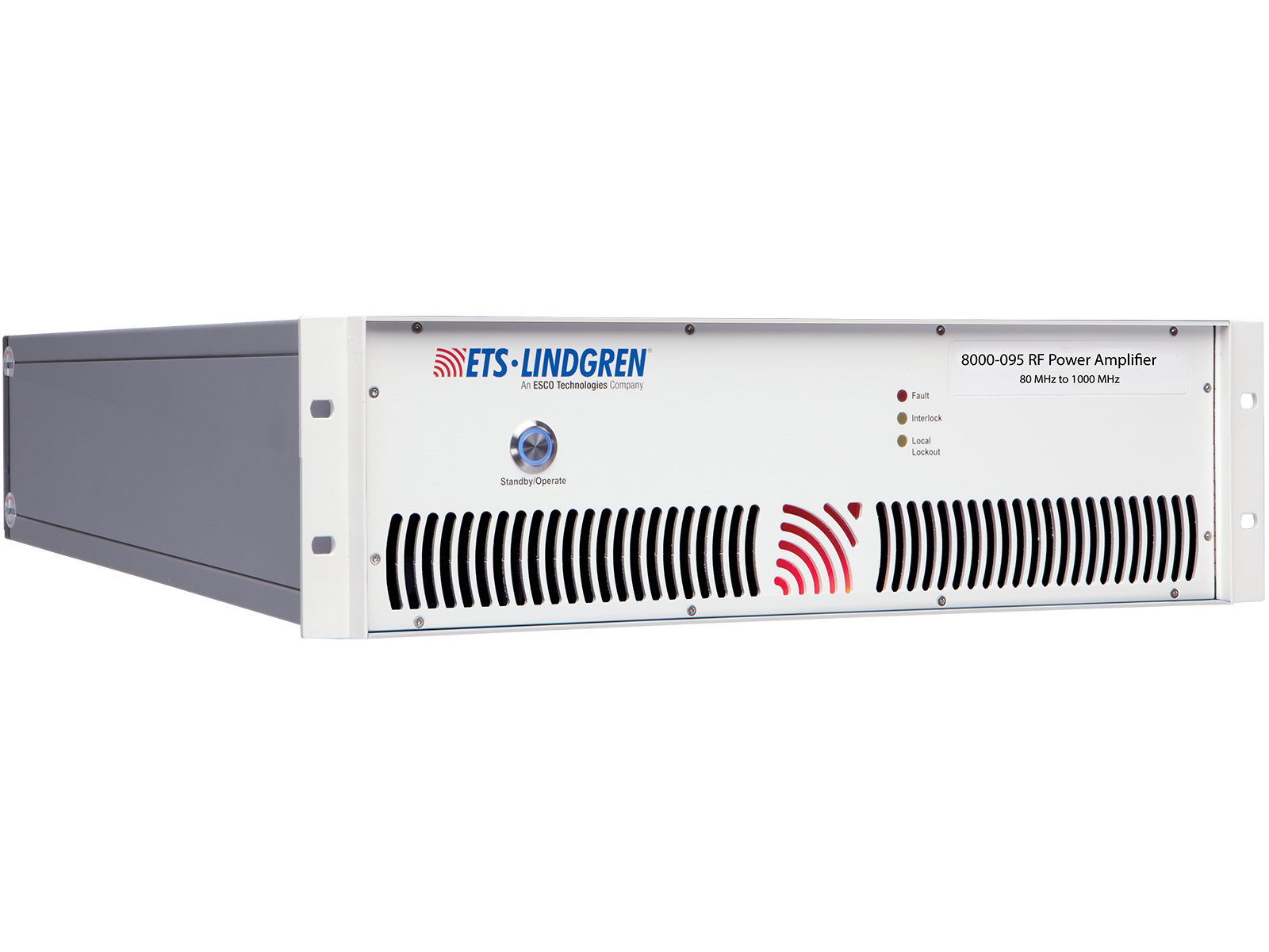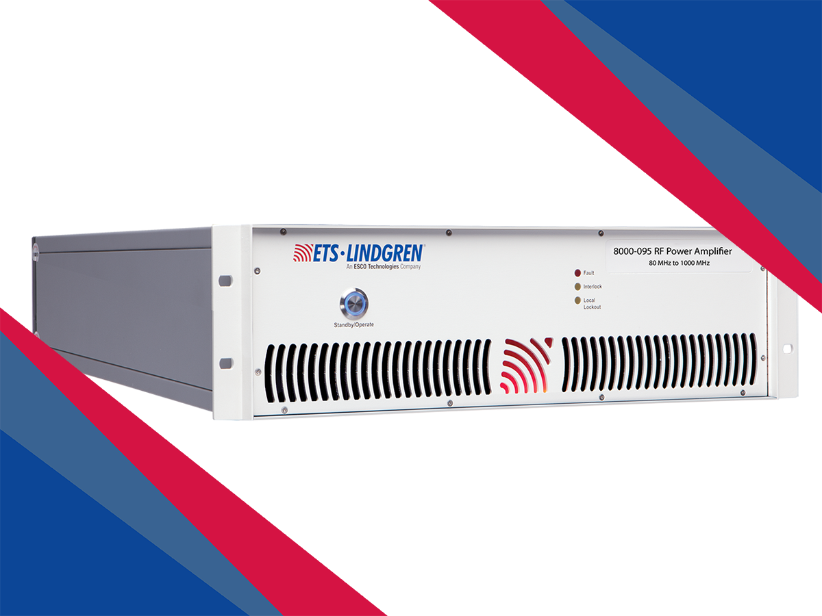 The Model 8000-095 RF Power Amplifier delivers 80 W of output power across the 80 MHz to 1000 MHz range, making it well-suited for EMC applications requiring IEC 61000-4-3 compliance. Utilizing Silicon LDMOS technology, it offers excellent linearity and efficiency in a compact, rugged design that supports reliable operation in demanding test environments. The amplifier provides very low distortion and full tolerance for 100% output mismatch, ensuring stable performance even under difficult load conditions. Remote control capability via GPIB, Ethernet, and USB allows easy integration into automated test systems, while the standard 19-inch rack-mount configuration—or optional bench-mount version with front panel connectors—offers flexible installation options for laboratory or production use.