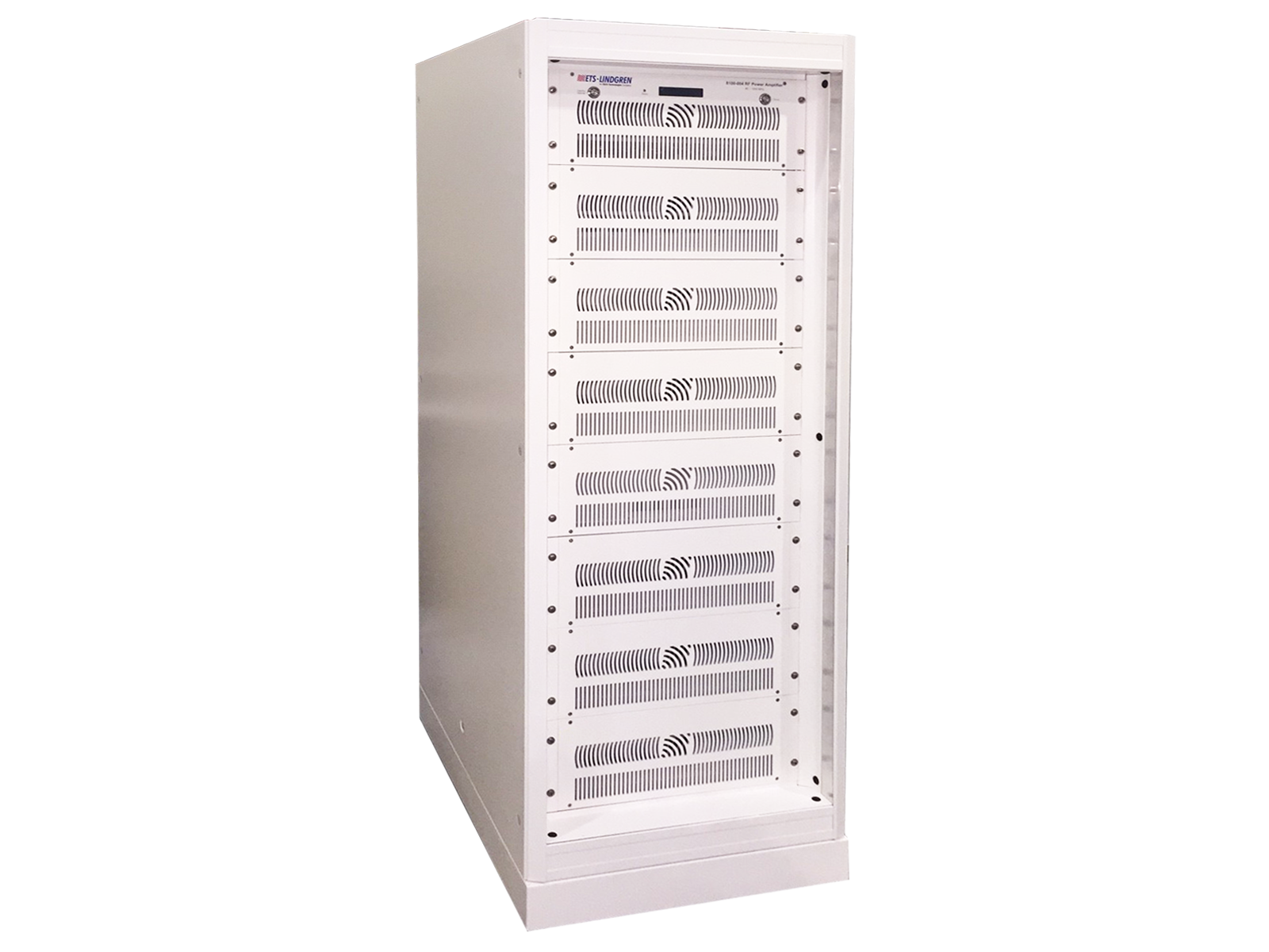 The Model 8100-004 RF Power Amplifier delivers up to 2000 watts of output power from 80 MHz to 280 MHz, 1000 watts from 280 MHz to 480 MHz, and 700 watts up to 1 GHz, making it ideal for demanding EMC applications requiring ISO 11452-2 testing at 200 V/m. Utilizing advanced GaAs technology, it provides superior linearity and efficiency compared to traditional silicon-based amplifiers while maintaining a rugged, high-reliability design suitable for continuous operation. Its wide operating frequency range supports automotive and commercial radiated immunity testing where high field strengths are required. Very low distortion and 100% output mismatch tolerance ensure stable, accurate performance even under challenging load or antenna conditions. Remote control capability via GPIB and LAN allows seamless integration into automated test environments. Housed in a robust 32U rack enclosure, the Model 8100-004 offers a powerful and dependable solution for high-performance EMC laboratories.