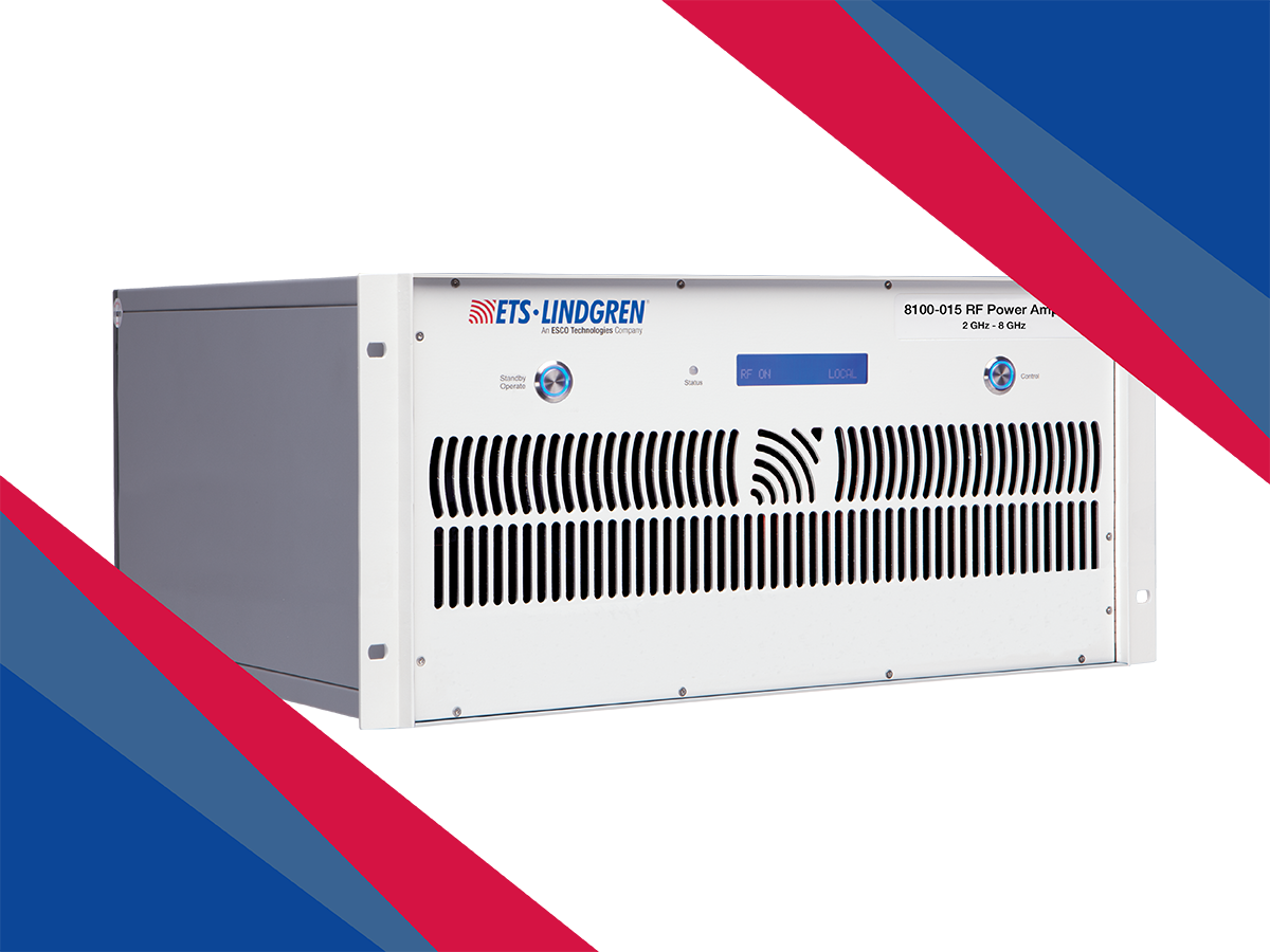 The Model 8100-015 RF Power Amplifier delivers 300 watts of output power and is designed for demanding EMC applications requiring MIL-STD-461 RS103 testing up to 200 V/m. Utilizing advanced GaAs technology, it offers superior linearity and efficiency compared to traditional silicon-based amplifiers while maintaining a rugged, high-reliability design suitable for continuous operation. Its broad operating frequency range from 2 GHz to 8 GHz supports high-frequency radiated immunity and military compliance testing needs. Very low distortion and 100% output mismatch tolerance ensure stable, accurate performance even under challenging load or antenna conditions. Remote control capability via GPIB and LAN provides seamless integration into automated test environments. With its robust 5U rack-mount configuration and optional bench setup, the Model 8100-015 delivers a powerful and dependable solution for advanced EMC laboratories.