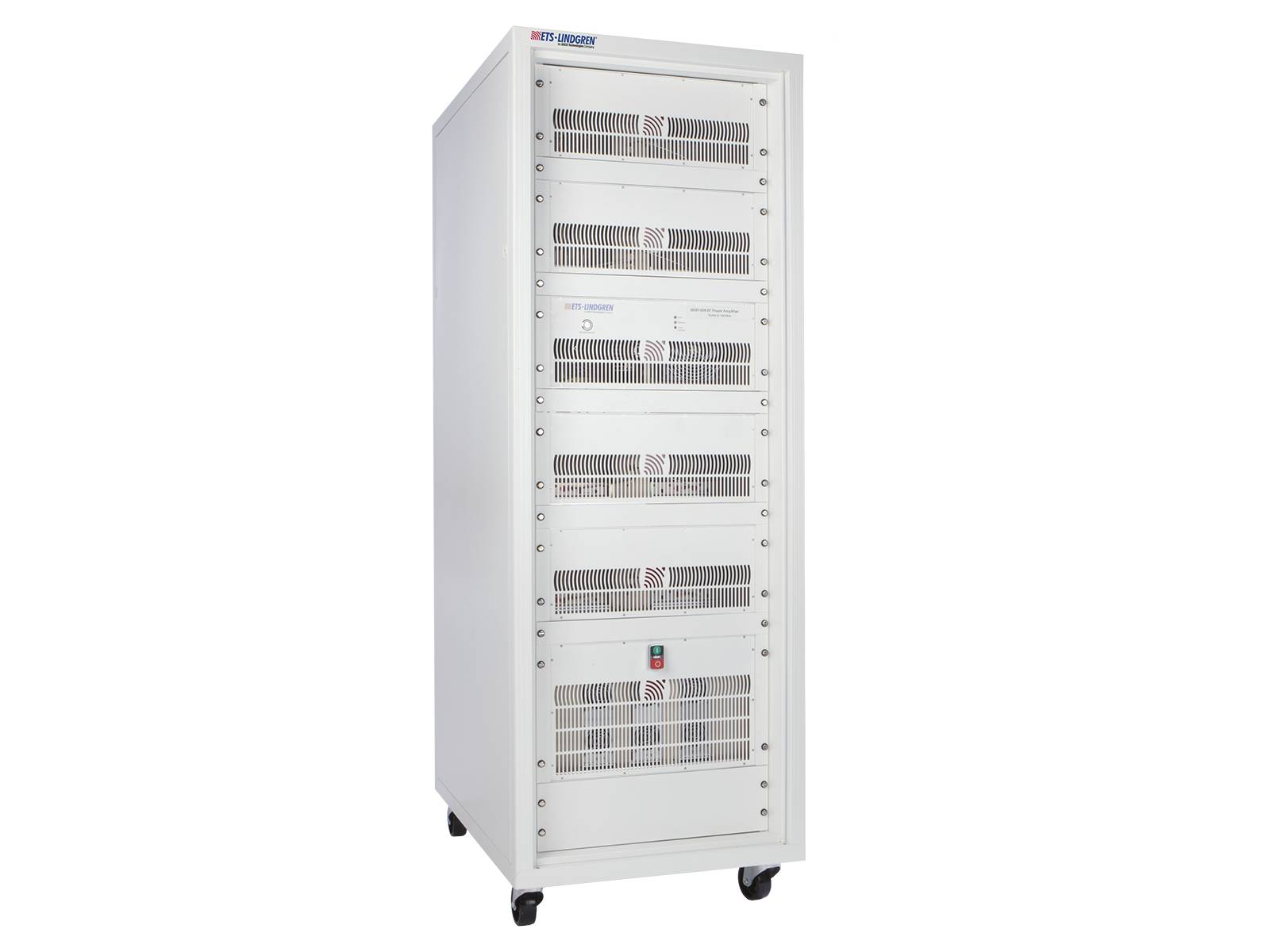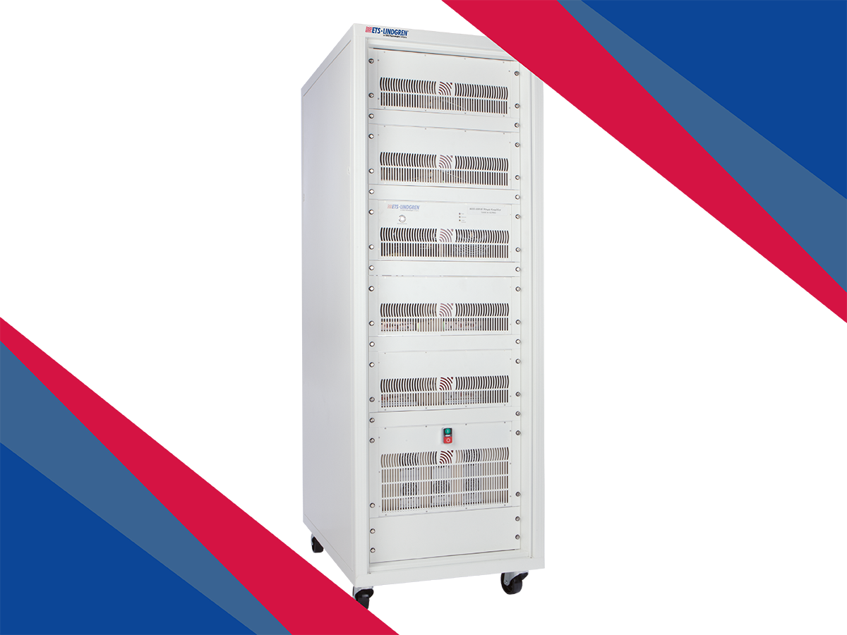 The Model 8100-161 RF Power Amplifier delivers 350 W of output power across the 6 GHz to 18 GHz range, making it ideal for demanding EMC applications, including MIL-STD 461 RS103 testing. Featuring a high-reliability MOSFET design, it provides excellent linearity, efficiency, and rugged performance suitable for continuous operation in high-field environments. Operating in Class A, the amplifier offers very low distortion and full tolerance for 100% output mismatch, ensuring stable, consistent performance even under challenging load conditions. Remote control capability via Ethernet, USB, and GPIB enables seamless integration into automated test systems, while the standard 19-inch rack-mount configuration—or optional bench-mount version with front panel connectors—provides flexible installation for both laboratory and production test setups.