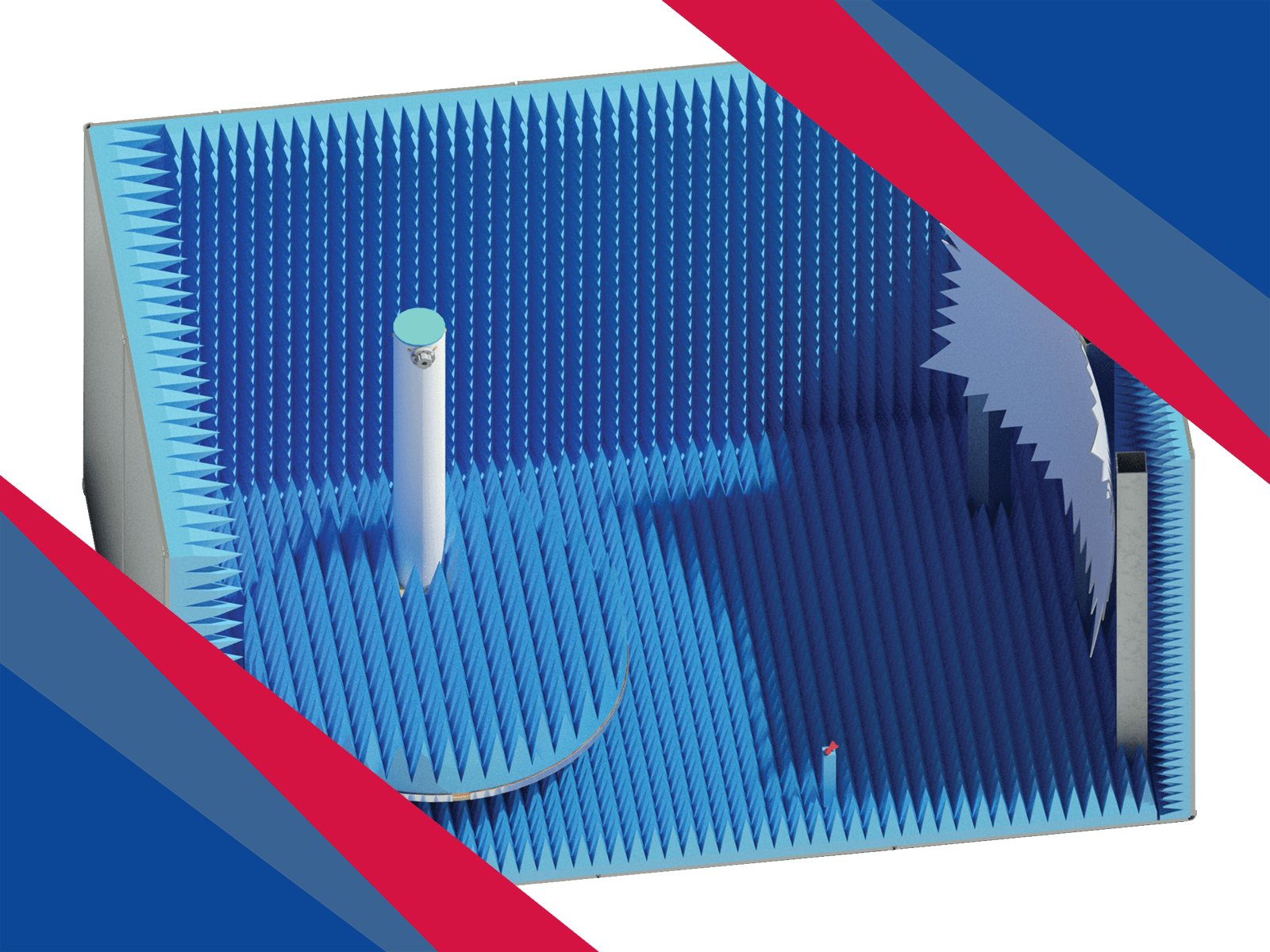 The AMS-5708 is a walk-in Compact Antenna Test Range (CATR) with a 150 cm quiet zone, designed for 5G FR2 testing of heavy-duty devices like base stations and repeaters. It offers flexible frequency configurations, spacious setup access, and supports full characterization of beam steering and adaptive antenna systems.