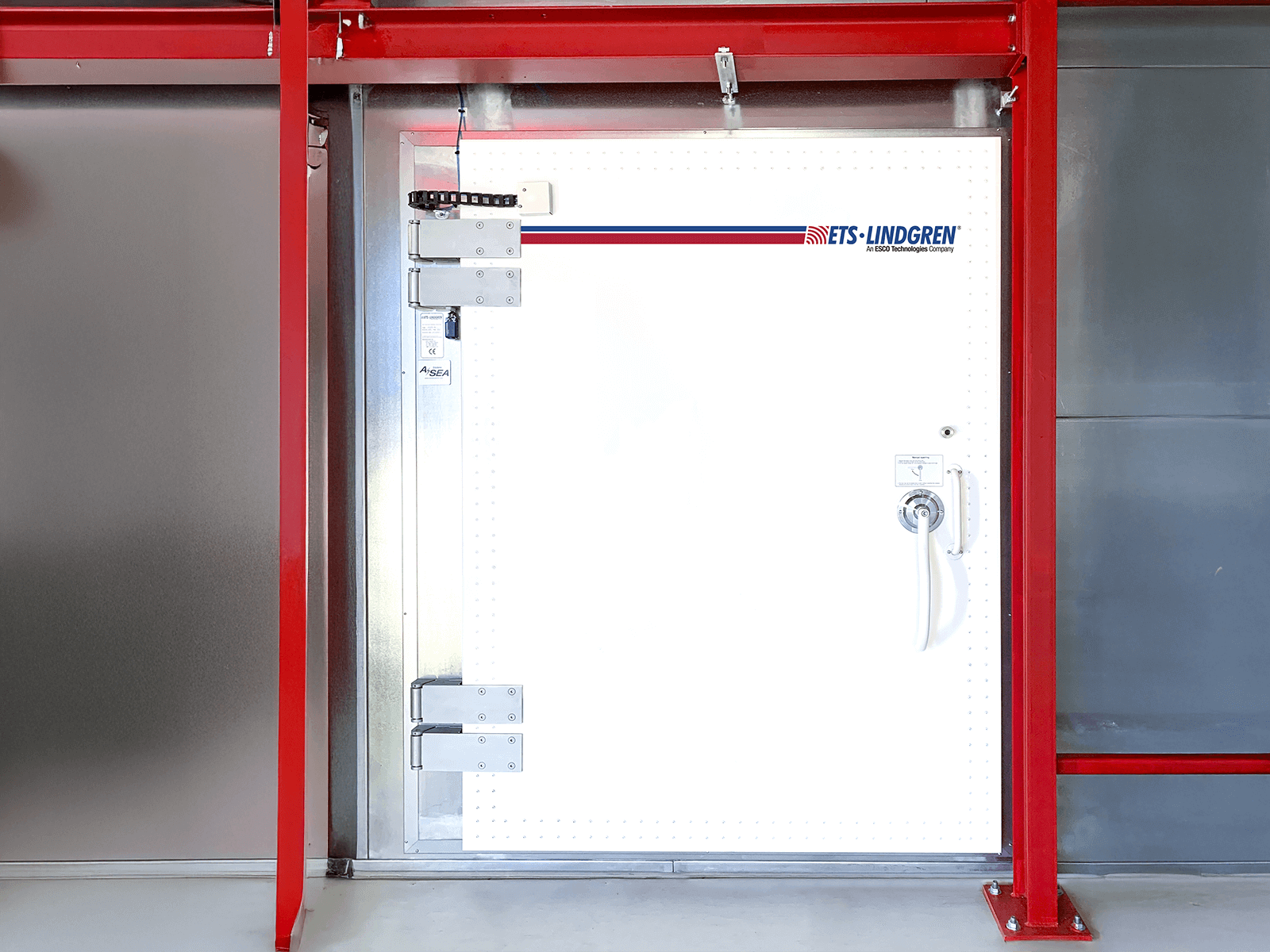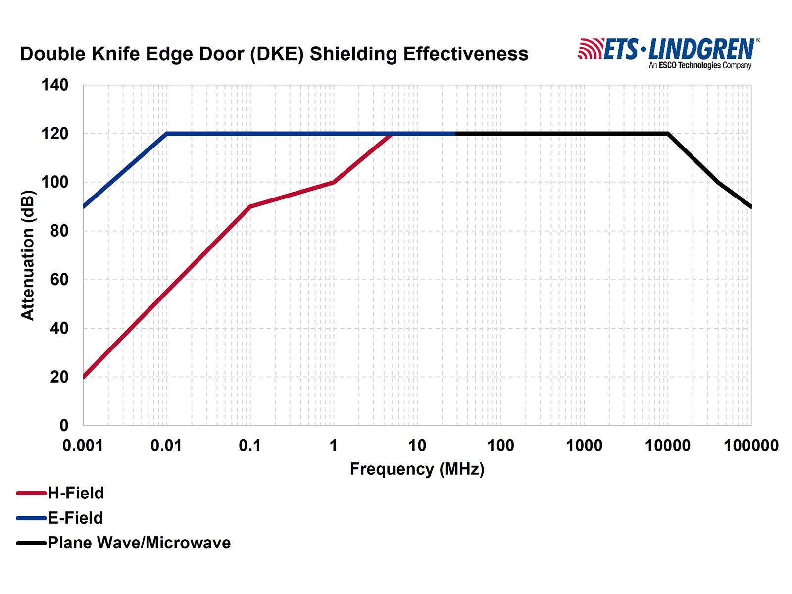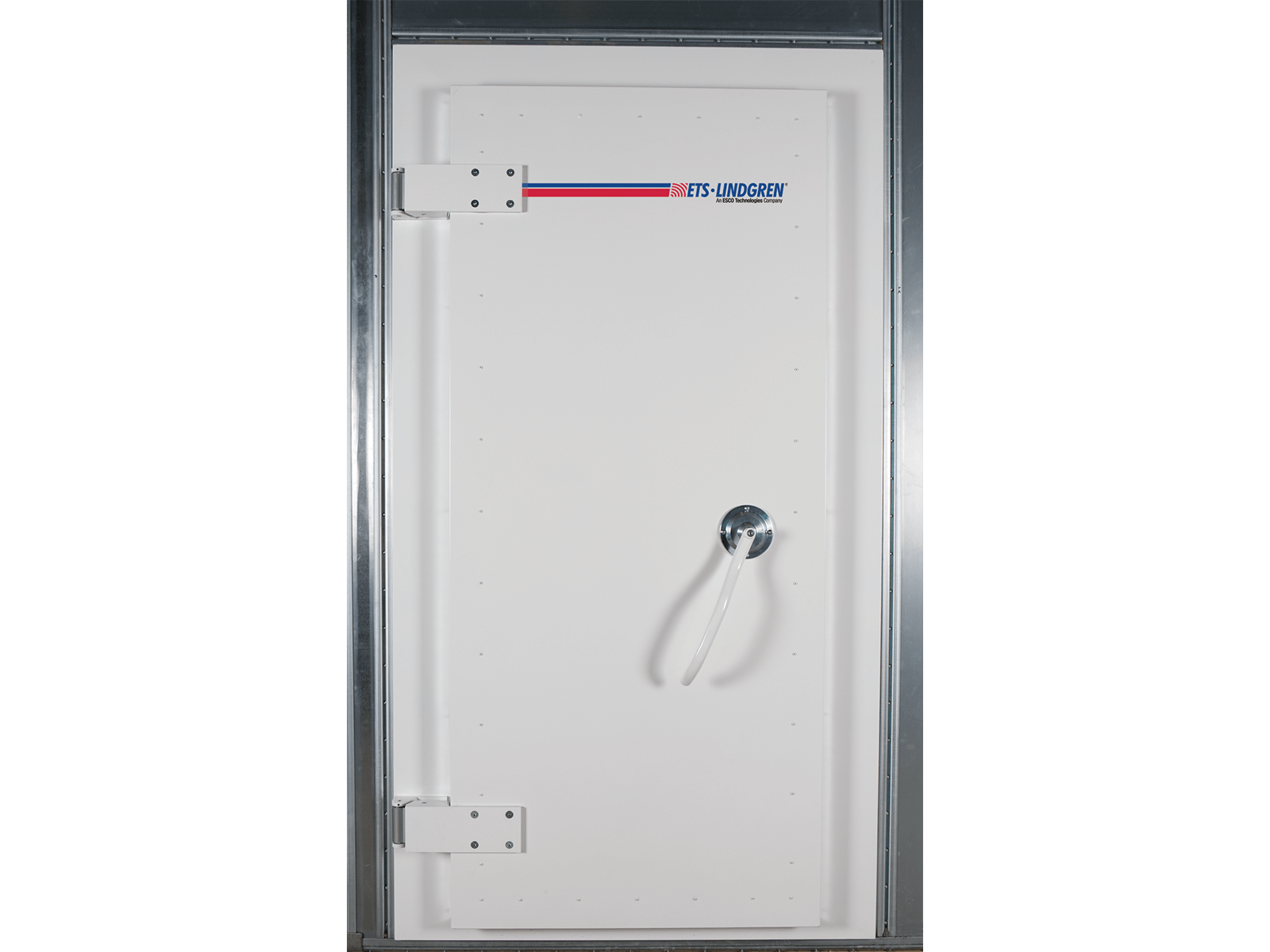 The Double Knife-Edge (DKE) Shielded Door provides a precision-engineered RF seal designed for chambers that require dependable shielding performance and rugged mechanical reliability. Its dual knife-edge design mates with beryllium copper contact surfaces to maintain consistent electrical continuity and long-term serviceability. Heavy-duty hinges, a three-point latch system, and reinforced construction ensure smooth movement and secure closure, even in large or frequently used installations.