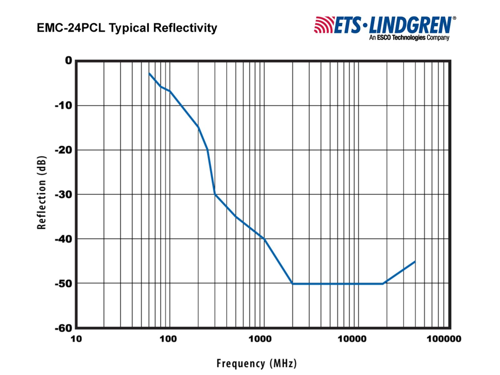 The EMC-24PCL is an evolution traditional pyramidal absorber that is ultra broadband and manufactured with high-quality, low-density polyurethane foam, which has been optimized for EMC applications.
